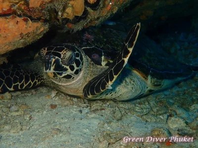 ウミガメの種類は、プーケットで一番多い種類のタイマイです。