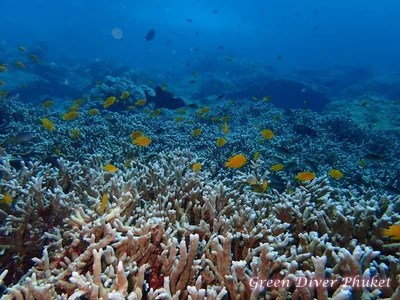ラチャノイ島のツアーを選んで、潜るチャンスがあったら、ぜひ生き生きとしたエダサンゴと、巨岩の景色の変化を楽しでいただきたいと思います。
