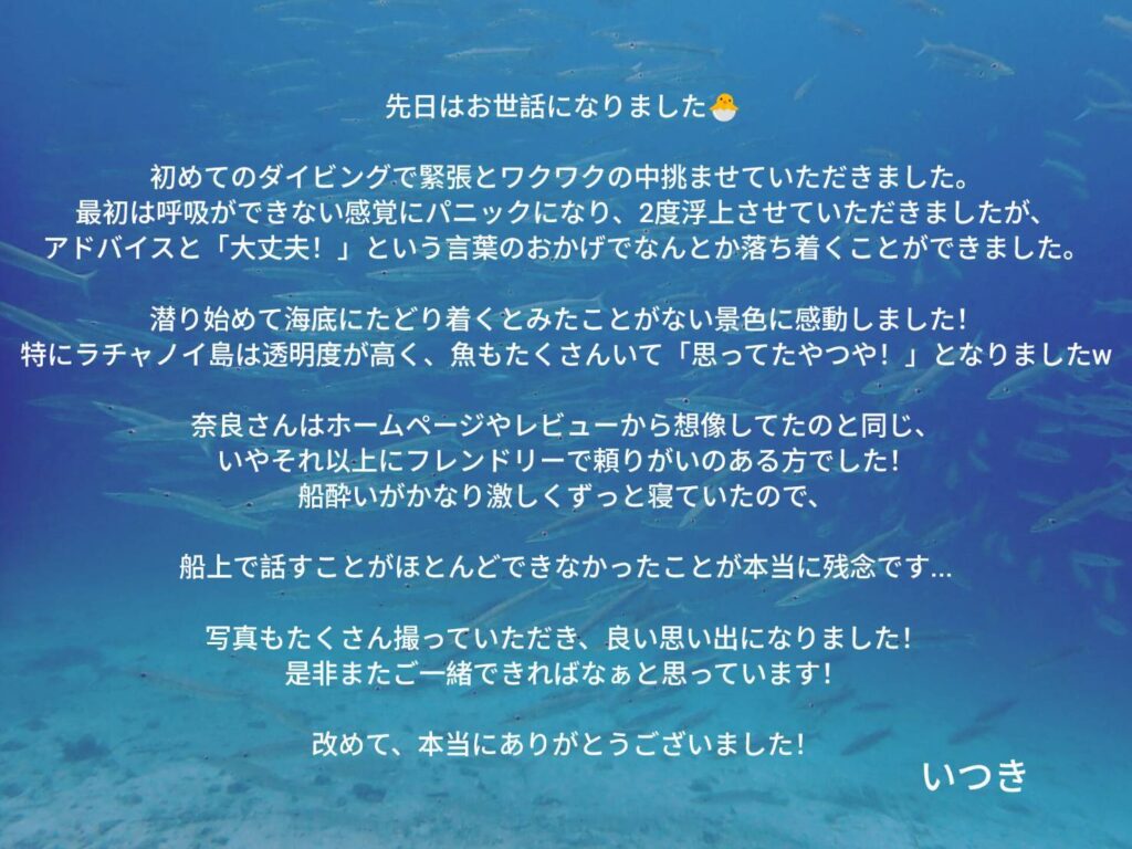 こちらでダイビングをして本当に良かったです!