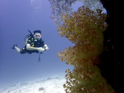 流れがあるので、ラチャ島方面ではあまり見られないこんな色鮮やかなソフトコーラルがついていました。