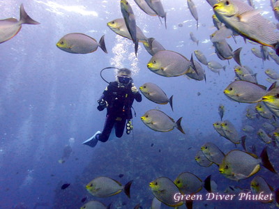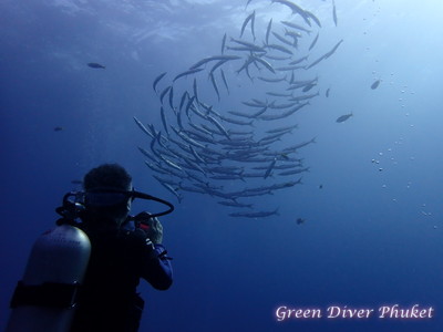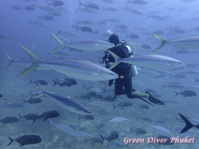 日本では見かけない魚のようですが、プーケット周辺でもここまで群れることはないです。