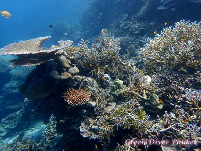 ソフトコーラルの色鮮やかさは他のポイントでも楽しめますが、ハードコーラルの素晴らしさをみられるのは、もうスリン諸島しかないんじゃないでしょうか?